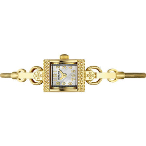 The Lady Hamilton Vintage is a piece inspired by cocktail watches that is never out of place. The chain bracelet and delicate case offer an antique look that can be dressed up with an evening gown or down with jeans and a t-shirt and still look relevant. Somewhere in the world, it's cocktail hour. Stainless steel yellow PVD coating case and bracelet with mother of pearl dial. Quartz movement. Case size 15mm x 19mm. Water resistance up to 50 meters. Sapphire crystal. Folding clasp.