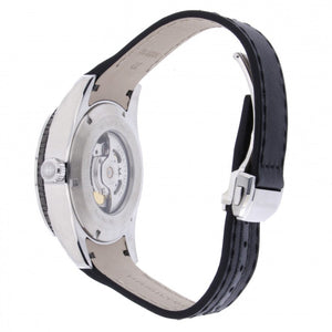 For well-dressed men who like to travel in style, the limited edition 46 mm Broadway GMT is the ideal travel companion. The exclusive new H-14 automatic movement offers up to 80 hours of power reserve and the stylish ceramic bezel shows 24 far-flung destinations. The Broadway GMT ensures the urban traveler is ready to step out in style – wherever in the world he is. Stainless steel case with a black leather strap, black dial. Case size 46mm. Water resistance upto 50 meters. Automatic movement. Sapphire crystal. Folding clasp.
