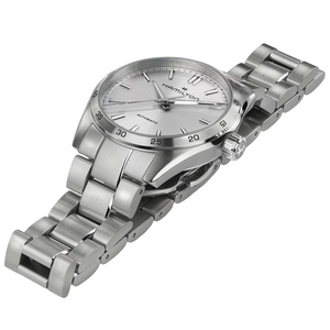 Made for those who enjoy function and style in equal measure, the Jazzmaster Performer line offers a powerful sport-chic aesthetic. Powered by the H-10 automatic movement with an 80 hour power reserve, the Jazzmaster Performer Automatic features a 34mm stainless steel case, accented by a modern silver dial, nickel indexes and a refined stainless steel bracelet.