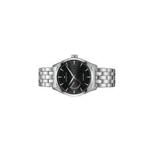 When tradition meets innovation, the results are rarely so harmonious. The Jazzmaster Power Reserve uses simple design outside to balance the strength of the new H-13 movement inside. Only the power reserve scale hints at the stamina of the 80 hour reserve this model offers. Stainless steel case and bracelate with black dial. Case size 42mm. Water resistance upto 50 meters. Automatic movement. Sapphire crystal. Folding clasp.