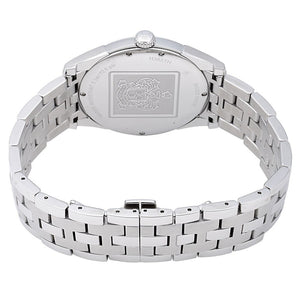 The slim case of the Jazzmaster Thinline creates a clean, streamlined appearance that will make an impression in a light, subtle way, offering a traditional look that will never go out of style. Stainless steel case and bracelet, blue dial. Case size 42mm. Water resistance upto 50 meters. Quartz movement. Sapphire crystal. Folding clasp.