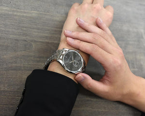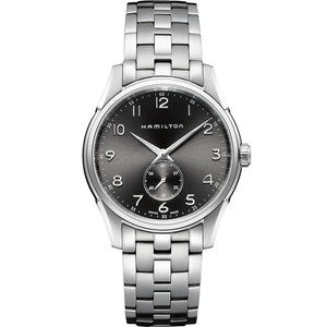 The slim case of the Jazzmaster Thinline creates a clean, streamlined appearance that will make an impression in a light, subtle way, offering a traditional look that will never go out of style. The Small Second adds a level of complication that still fits neatly in the slimline case. Stainless steel case and bracelet with, black dial. Case size 40mm. Water resistance upto 50 meters. Quartz movement. Sapphire crystal. Folding clasp.