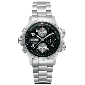 Innovative, adventurous and accurate. It's what pilots need in a timepiece and Hamilton always delivers. The Khaki X-Wind features the first ever drift angle calculator to appear in a watch and helps pilots accurately calculate how crosswinds will affect their journey. With a technical look and automatic movement that also suits urban aviators down to the ground it's the perfect everyday co-pilot. Stainless steel case and bracelet with, black dial. Case size 44mm. Water resistance upto 100 meters. Automatic movement. Sapphire crystal. Folding clasp.