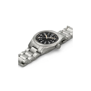 The original soldier’s watch is sportier than ever with a comfortable stainless steel bracelet. Powered by our exclusive H-50 handwinding movement, our latest Khaki Field Mechanical style won’t let you down. Rugged and reliable, this 38mm field watch is ready for an adventure.