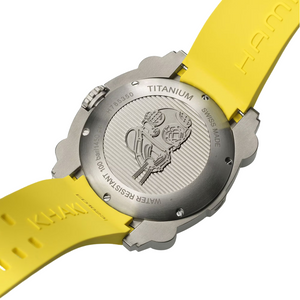 Water resistant up to 100 bar (1,000 m) and equipped with a helium escape valve, the Khaki BeLOWZERO is perfect for even the most daring of deep water adventures. The convex sapphire crystal offers high-performance protection during underwater exploration and its bright yellow rubber strap, paired with a 46mm brushed titanium case make it reminiscent of the bulk of a yellow submarine. This Hamilton is a nautical classic designed for marine pioneers.