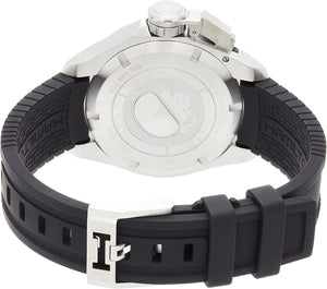 The original Hamilton Frogman was created for U.S. Naval 'Frogman' teams and featured in the 1951 smash-hit movie 'The Frogmen'. Almost 70 years have passed since then and watchmaking technology has come a long way. What hasn't changed are the vital features that made the watch as big a hit as the movie: Uni-directional rotating bezel, supreme water resistance and underwater luminescence. Stainless steel case with a black rubber strap, black dial. Case size 42mm. Water resistance upto 300 meters. Automatic movement. Sapphire crystal. Folding clasp.
