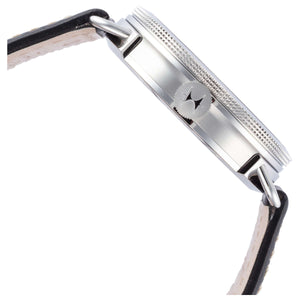 Strong and striking, the Khaki Navy Pioneer Small Second is an automatic choice that makes a big impression in, on, or under the water. Designed for the decks but fully prepared to get its feet wet, a range of dial and strap combinations ensures there's an option to suit even the most discerning of style-conscious sailors. Stainless steel case with black cow leather strap, black dial. Case size 40mm. Automatic movement. Water resistance up to 100 meters. Sapphire crystal. Pin buckle.