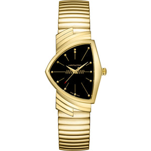 The King of Rock ‘n’ Roll was known for the incredible flexibility that was the key to his signature dance moves. He embodied the American spirit and himself owned an original Ventura Flex. This is the inspiration behind the Ventura Flex, which revives the flexible bracelet for the ultimate twenty-first century tribute to Mid-Century Modern design. Stainless steel yellow PVD coating case and bracelet with a, black dial. Quartz movement. Case size 32.3mm x 50.3mm. Water resistance upto 50 meters. Mineral crystal. Butterfly clasp.
