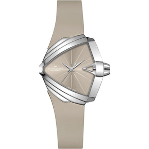 Streamlined and sleek, the Ventura S Automatic is the next evolution of a revolutionary icon. Push the boundaries with a timeless expression of creativity – the world’s first electric battery-powered watch. Stainless steel case with brown rubber strap and brown dial. Case size 34.5mm x 38mm. Water resistance up to 50 meters. Automatic movement. Sapphire crystal. Pin buckle clasp.