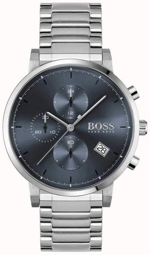 The Hugo Boss Men's Watch 1513779 is a true classic. The dial shows: 24-hour, chronograph, date, minute, second, hour. The high-quality stainless steel bracelet ensures a high level of wearing comfort. The water resistance of 3 atm, assures a good suitability for everyday use. A scratch-resistant hardened mineral glass protects your new acquisition from accidental damage Case diameter: 43 mm. The colors of your new 1513779: Dial: Blue, Strap: Silver, Case: Silver. A watch for men who love the special from Hugo Boss.