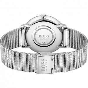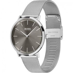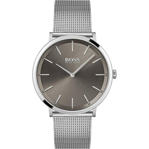 Classic Hugo Boss Mens watch 1513828 . Colors > Dial: Grey, Strap: Silver, Case: Silver. Very comfortable Stainless steel strap. The water resistance is 3 ATM. A scratch proove hardened, Mineral glass protects your watch from involuntary injuries. Case size 40mm.