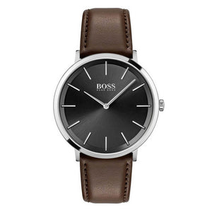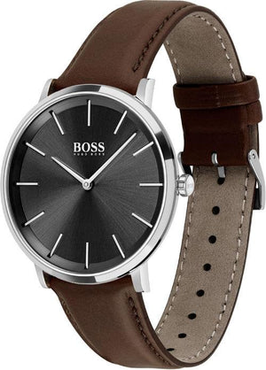 The Hugo Boss men's watch 1513829 is a true classic. The dial shows: Minute, Hour. The high-quality strap made of calfskin ensures a high wearing comfort. The water resistance in the amount of 3 atm, assures a good everyday suitability. A scratch-resistant hardened, mineral glass protects your new acquisition from accidental damage Case diameter: 40mm. Colors of your new 1513829: Dial: black, Strap: brown, Case: silver. A watch for men who love the extraordinary from Hugo Boss.