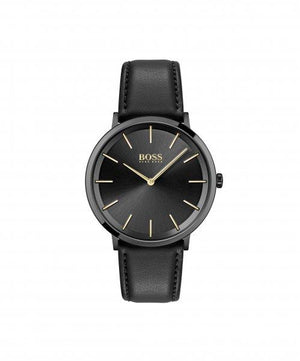 Classic Hugo Boss Mens watch 1513830 . Colors > Dial: Black, Strap: Black, Case: Black. Very comfortable Calf leather strap. The water resistance is 3 ATM. A scratch proove hardened, Mineral glass protects your watch from involuntary injuries. Case size 40mm.