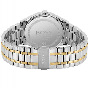Hugo Boss Commissioner Two-Tone Stainless Steel Men's Watch - 1513835. Stainless steel case and bracelet. Dial color silver white with mineral crystal glass, case color silver gold. Case size 42mm and water resistance upto 30 meters.