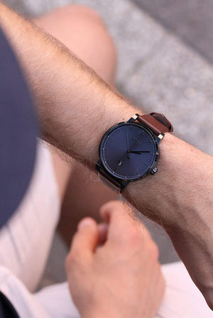 This Hugo Boss watch has a case 42mm in diameter and is fitted with a broen leather strap. Inside the case lies a movement and the watch features a mineral crystal. Swiss quartz movement, traditional buckle clasp. Water resistacne upto 30 meters.