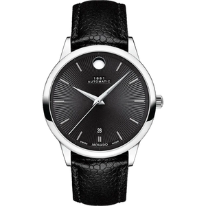 This Movado watch has a stainless steel case 39.5 mm in diameter and is fitted with a leather strap. Inside the case lies a ETA movement and the watch features a Sapphire crystal. Water resistance up to 30 meters. Deployment Clasp
