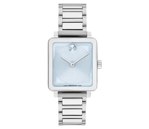 The BOLD Evolution 2.0 is defined by an elevated, bold case and a dimensional micro-textured dial. This 26mm square watch features a light blue lacquer dial, slim steel hands, and our signature dot at 12 o'clock. Water resistance up to 30 meters. K1 mineral crystal. Deployment clasp with push button.