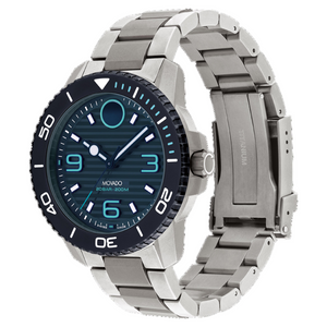 Ultra-light, ultra-durable titanium pairs perfectly with this contemporary-cool sporty design. We’ve paired an oversize 45mm titanium case with a rotating tachymeter bezel crafted from our cutting-edge Ti-5 titanium, matte blue dial, blue and white Swiss Super-LumiNova accents, and our iconic dot motif at 12 o’clock. A super-sleek titanium bracelet completes the design.