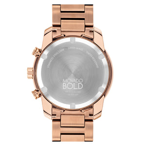 The sporty, eternally stylish chronograph gets a fresh feel with strong, contemporary design that combines modern minimalism and a bold edge. The classic bracelet and statement-making 44mm case are cast in warm bronze-hued ion-plated stainless steel for a flawlessly refined finish. The vibrant red toned chronograph dial features a date window and Swiss Super-LumiNova® accents framed by a tachymeter scale.
