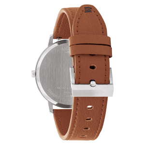 A fresh, fun take on ultra modern, hyper-minimalist design. Add a contemporary vibe to any look with this cool Face watch. Its 41mm stainless steel case houses a light grey dial with slim dark grey hands and a recessed dot at 12 o’clock. We’ve paired it with a cognac brown strap crafted from vegan leather with a buckle closure. Quartz movement. Case size 41mm. Water resistance up to 30 meters. K1 mineral crystal.