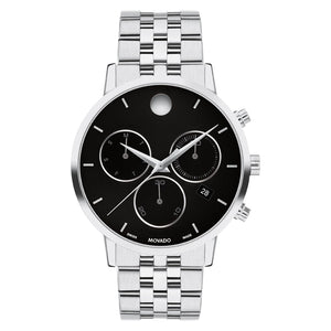 It’s time you owned a masterpiece. The Movado Museum Classic is an icon of modern design, featured in museums worldwide and renown for the elegant simplicity of the dial defined by a single dot at 12 o’clock, a design element that symbolizes the sun at high noon. In this style, we’ve paired a 42mm case in stainless steel with a black chronograph dial—outfitted with three subdials, our signature dot and slender hands—and a timeless stainless steel bracelet. Quartz movement. Water resistance up to 30 meters. Sapphire crystal. Deployment clasp with Push button.