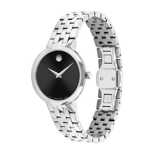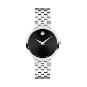 It’s time you owned a masterpiece. The Movado Museum Classic is an icon of modern design, featured in museums worldwide and renown for the elegant simplicity of the dial defined by a single dot at 12 o’clock, a design element that symbolizes the sun at high noon. In this style, we’ve paired a stainless steel 30mm case with a classic black dial and a flexible bracelet. The signature dot and slender hands are cast in matching stainless steel for a flawless finish.