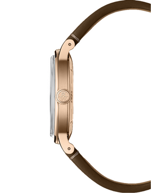 For this inaugural millesime collection, RAYMOND WEIL pays homage to the rich heritage and traditions of horology while celebrating the simplicity of refined design. Millesime timepiece offer a period charm combined with present-day practicality. The silver dial, located beneath a vintage-inspired sapphire crystal glass-box, has been refined to the highest degree. The hours and minutes are eloquently conveyed with rose gold hands, lined with Super-LumiNova®. The sector dial presents the hours, minutes and seconds periods on discrete tracks, augmenting readability. A closer inspection of the dial reveals contrasting finishes, the hour track is smooth, the minute track is snailed and the central area of the dial is adorned with a delicate vertical brush. The bezel is decorated with a vertical satin-brush that contrasts wonderfully with the highly polished bevel nearby. This juxtaposition of two finishes reinforces the overall level of finishing. A sapphire caseback affords sight of the self-winding movement within and the “W-shaped” oscillating weight, RAYMOND WEIL’s horological signature. Offered in a selection of dial colours, each model is paired with a colour-coordinating genuine calf leather strap with a unique W-stitched detail. As the name suggests, the collection is a grand vintage interpretation of the RAYMOND WEIL brand.