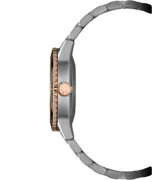 With its unique and special features, the freelancer diver pays tribute to the freedom and independence of RAYMOND WEIL. At the heart of the freelancer diver watch sits the Calibre RW4200, an automatic movement with a power reserve of 41 hours. The 36mm stainless steel case features a scratch-resistant unidirectional rotating bezel in black ceramic with light rose gold graduation and a luminescent indicator. Embossed with the Brand’s signature RW monogram, the rose gold plated screwed-down crown gives the timepiece a water resistance of 300m. The mother-of-pearl dial features a drop-shaped aperture at 6 o’clock that reveals the date and rose gold plated indexes treated with Super-LumiNova®. Signature of the freelancer collection, a pair of rose gold plated barrel-shaped hour and minute hands have been added. The folding clasp of the two-tone rose gold plated stainless steel bracelet has a double push-security system and an integrated steel diver extension that allows for easy strap width adjustment. Equipped with a screwed-down case-back, the rear of the watch is engraved with a water landscape, representing the freedom felt on the water and the independent spirit and signature of RAYMOND WEIL. Launched in 2007, the freelancer collection was created in honor of the free-spirit who wishes to remain in control of their own destiny, and features an eclectic mix of urbane mechanical watches. This freelancer mixes classic and contemporary design to create a harmonious and unique timepiece. Constantly reinterpreting itself and free from all constraints, the freelancer conserves those elements which constitute its strengths.