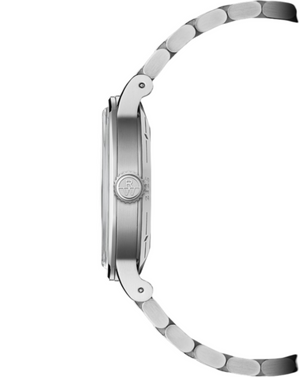RAYMOND WEIL pays homage to the rich heritage and traditions of horology while celebrating the simplicity of refined design. The brand has naturally delved into the past, creating new timepieces that offer period charm combined with present-day practicality. The silver dial, located beneath a vintage-inspired sapphire crystal glass-box, has been refined to the highest degree. The hours and minutes are eloquently conveyed with silver-toned hands, lined with Super-LumiNova®. The sector dial presents the hours, minutes and seconds periods on discrete tracks, augmenting readability. A closer inspection of the dial reveals contrasting finishes, the hour track is smooth, the minute track is snailed and the central area of the dial is adorned with a delicate vertical brush. The bezel is decorated with a vertical satin-brush that contrasts wonderfully with the highly polished bevel nearby. This juxtaposition of two finishes reinforces the overall level of finishing. A sapphire caseback affords sight of the self-winding movement within and the “W-shaped” oscillating weight, RAYMOND WEIL’s horological signature. Reference 2125 combines a contemporary sensibility with a neovintage aesthetic. This central seconds comes in 3 very distinctive dial colors – silver, denim blue and burgundy – with geometric lines and a sector dial.As the name suggests, the collection is a grand vintage interpretation of the RAYMOND WEIL brand.