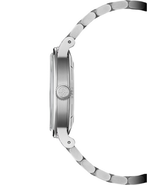 RAYMOND WEIL pays homage to the rich heritage and traditions of horology while celebrating the simplicity of refined design. The brand has naturally delved into the past, creating new timepieces that offer period charm combined with present-day practicality. The denim blue dial, located beneath a vintage-inspired sapphire crystal glass-box, has been refined to the highest degree. The hours and minutes are eloquently conveyed with silver-toned hands, lined with Super-LumiNova®. The sector dial presents the hours, minutes and seconds periods on discrete tracks, augmenting readability. A closer inspection of the dial reveals contrasting finishes, the hour track is smooth, the minute track is snailed and the central area of the dial is adorned with a delicate vertical brush. The bezel is decorated with a vertical satin-brush that contrasts wonderfully with the highly polished bevel nearby. This juxtaposition of two finishes reinforces the overall level of finishing. The lugs are adorned with 16 laboratory-grown diamonds (0.26 cts), providing a discreet sparkle that blends quintessential femininity with modern sensuality. A sapphire caseback affords sight of the self-winding movement within and the “W-shaped” oscillating weight, RAYMOND WEIL’s horological signature. Reference 2125 combines a contemporary sensibility with a neovintage aesthetic. This central seconds comes in 3 very distinctive dial colors – silver, denim blue and burgundy – with geometric lines and a sector dial. As the name suggests, the collection is a grand vintage interpretation of the RAYMOND WEIL brand.