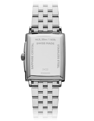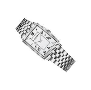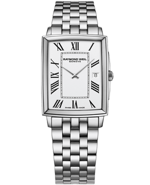 Equipped with a quartz movement, this toccata men’s classic white dial wristwatch features a sleek stainless steel rectangular case with a date window at 3 o’clock and a sophisticated white dial punctuated with black Roman numeral markers to add a touch of warmth to this modern classic.Refined design and timeless materials: toccata will impress men on whom time holds no dominion. This elegant and timeless collection celebrates the artistic and musical spirit behind the Brand’s DNA. Following in the footsteps of the great composers, toccata promotes RAYMOND WEIL’s Swiss horology while respecting the tradition and heritage handed down from generation to generation within the family company. Water resistant up to 50 meters