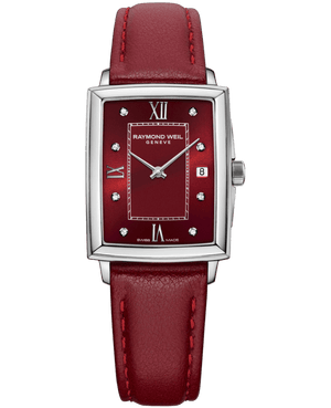 Inspired by the Art-Deco movement, the new vintage-inspired toccata watches encompass clean lines, sumptuous dials and are perfectly suited to any occasion.Housed in elegantly refined rectangular cases, these new creations exude a charming simplicity. Displaying merely the hours, minutes, and date, there is a welcome purity to each dial option. Each watch is equipped with a Swiss quartz movement, delivering precision and obviating the need for regular winding.The centre of the dial is endowed with a matte appearance, while the hour track is adorned with a sunray satin finish. The dial is dressed in a new lacquer finish, imbuing it with a charming radiance and heightening the overall sumptuousness. With its sleek appearance, pure lines and notable refinement, the toccata ruby dial watch is perfectly suited to an array of social settings, while the model’s exquisite styling promises an enduring beauty.RAYMOND WEIL has employed its creativity to produce a range of models that promise to deliver eye appeal for many years to come.About the toccata collection: This elegant and timeless collection celebrates the artistic and musical spirit behind the Brand’s DNA. Following in the footsteps of the great composers, toccata promotes RAYMOND WEIL’s Swiss horology while respecting the tradition and heritage handed down from generation to generation within the family company. Water resistant up to 50 meters
