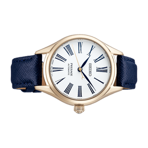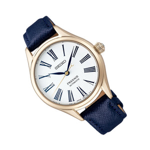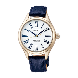Seiko presage automatic mens watch SPB234J1. Stainless steel (solid coating) case with a Leather strap, white dial. Case size 34.3 mm. Water resistance upto 50 meters. Automatic movement. Dual-curved sapphire crystal. Three-part lock with safety button.