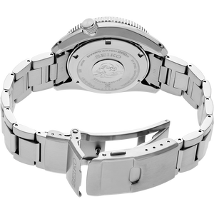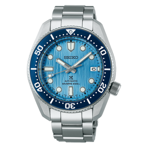 This specific design is inspired by Seiko’s 1968 Diver’s 300m watch – the first and highest of world standard hi-beat calibre diver’s – an mportant milestone in Seiko’s six decades of innovation in diving watches. It was worn for the first Japanese summit of Mount Everest. This ‘Save the Ocean’ Special Edition, inspired by the ice of Antarctica, expresses the accumulation of time – linking the Antarctic history of Seiko diver’s watches with the time it takes for a glacier to form into its beautiful structure. The dial pattern and colour express the natural formations and pressure the glacier underwent during its long cooling period. Glaciers formed during the ice age, approximately 150 to 3 million years ago. Prospex is a combination of the words ‘Professional’ and ‘Specifications.’ These timepieces are designed to be practical, reliable and durable within extreme or everyday environments, for experts, sports lovers and adventure seekers alike. Since launching Japan’s first diver’s watch in 1965, Seiko’s innovative watchmaking has changed global dive watch standards. Seiko donates a portion of proceeds from Save The Ocean models to the PADI Aware Foundation’s Marine Debris programme, the world’s largest underwater clean-up initiative. Stainless steel (super hard coating) case with stainless steel bracelet, blue dial. Automatic movement. Case size 42mm. Water resistance up to 200 meters. Curved sapphire crystal. Three fold clasp with secure lock, push button release with extender.