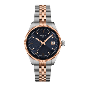 This watch is crafted to elevate your style for those truly special moments. The traditional guilloché dial with sunbeam rays reflects light beautifully, adding depth and elegance. The fluted bezel offers a sophisticated decoration representative of traditional watchmaking craftsmanship. The interchangeable quick-release bracelet offers maximum versatility, allowing you to easily change your look. 316L stainless steel with rose gold PVD coating case and bracelet with blue dial. Water-resistant up to a pressure of 10 bar (100 m / 330 ft). Scratch-resistant sapphire crystal with antireflective coating. Butterfly clasp with push-buttons, Interchangeable quick release bracelet