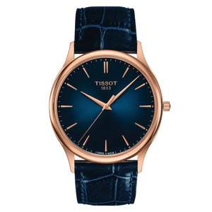 The excellence gold collection shines in its simplicity and purest form. The excellence gent is a gold watch in 18K that has been designed with thinness and simplicity in mind. The thinness of the watch will perfectly match the shape of any wrist and easily slip under the sleeve. 18K rose gold case with blue leather strap, blue dial. Quartz movement. Case size 40mm. Water resistance up to 30 meters. Scratch resistant sapphire crystal. Standard buckle clasp.