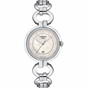 Embodying perfect simplicity, the clean lines of the Tissot Flamingo watch make it beautifully pure. It is unfussy and trendy without trying to be œ sure to never go out of style. It has a contemporary jewelry look combined with Swiss quality, the slim strap or bracelet true to its flamingo-inspired name expresses undiluted femininity. A timeless watch that will sit well on the wrist whether it be with casual wear or for a formal occasion. This elegant piece of jewelry is set to be a classic. Stainless steel case and bracelet, white mother-of-pearl dial. Case size 30 mm. Water resistance up to 50 meters.