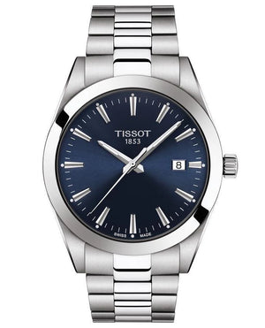 The Tissot Gentleman is a multi-purpose watch, both ergonomic and elegant in any circumstance. It is equally suitable for wearing in a business environment, where conventional dress codes apply, as at the weekend, when it adapts easily to leisure activities. As part of the life of a modern, active man, the Tissot Gentleman becomes the perfect companion for every day, every occasion, and every style. 40mm stainless steel case. Domed scratch-resistant sapphire crystal. Blue Dial with index markers. Swiss quartz movement.