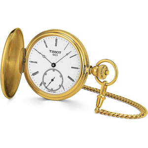 Unisex Tissot Watch From the T-Pocket Collection Of The Pocket Line. Watch Made With 316 L Steel Case With Gold Pvd Treatment With White Dial. Round Clock With Mineral Glass And With Romans. Case Diameter: 48.50mm, Thickness: 11.55mm, Watch Weight: 7.579G. The Watch Name is Tissot Savonnette Mechanical. Case size 48.5 mm.