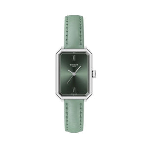 The SRV watch is inspired by the Art Deco times, developed in the 1920s. This time is characterised by geometric shapes and abstract patterns, become a dominant style in architecture, interior design, fashion and graphic arts. While the SRV is directly inspired by a model from 1975, that very design was itself a reinterpretation of Tissot’s earlier creations from the 1920s. The SRV’s quartz movement delivers precision that empowers to move forward fiercely and, with the End-of-Life indicator, the SRV anticipates her next move, so she’s always prepared. More than a name, SRV stands for, Sapphire Rectangle V: a faceted sapphire glass with a rectangular silhouette, and the ‘V’ a nod to its 5-bar water resistance, symbolised by the roman number 5. The leather strap stands out by its evolution over time. It adapts to the wearer's wrist, offering comfort and a unique fit.