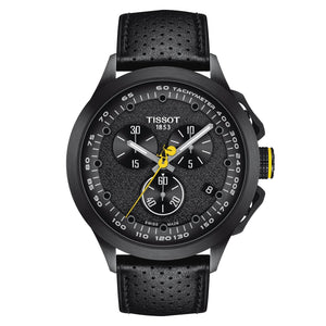Lung busting climbs in the Alps and Pyrenees, thrilling sprints, stunning tales of human exceptionalism... when Le Tour de France gets underway in July, millions of people around the world will be inspired. And the Tissot T Race Cycling 2022 Tour de France Special Edition is the perfect watch for them, bringing together Swiss precision and reliability with a classic design inspired by racing bikes. With the race logo engraved on the caseback and iconic yellow trim on the second hands and crowns, wearing this watch will bring you closer to the glory in France. The tissot special collections men's watch. stainless steel case with black PVD coating carbon composite Black dial, leather strap. Quartz movement. Case size 45mm. Scratch resistant sapphire crystal with antireflective coating. Water resistance up to 100 meters. Interchangeable quick release bracelet. Standard buckle.