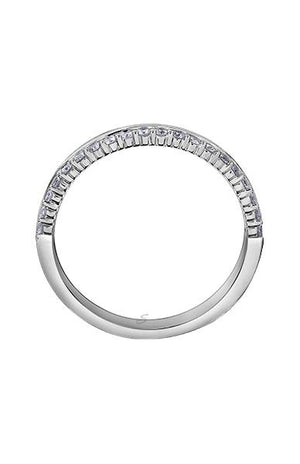 10K white gold 0.15TDW diamond love band, a reunion of a diamond claw set band with a plain classic band symbolizing two souls coming together. This is a perfect band to celebrate a marriage, an engagement, or an anniversary. Handcrafted with a high polish this band looks great with an engagement ring or worn by itself.