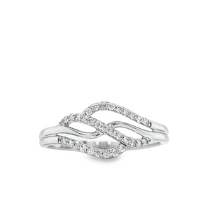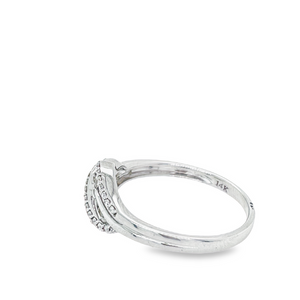 This Uniquely designed in 14K white gold diamond engagement ring in a total carat weight 0.15TDW. This wonderful diamond ring hosts 3 sparkling diamond accents waves at the center to creates an exquisite look. This bold and stylish look is sure to add a touch of elegance to your look.