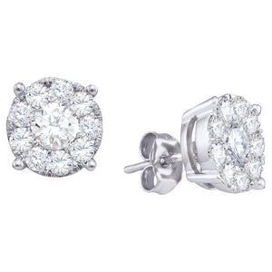 14k White Gold 1.00TDW Diamond Imperial Style Stud Earring. This brilliant diamond earring showcases a circle of sparkling diamonds to frame your center round diamond, set in 14k White Gold. The two large diamonds in the center add up to 0.50carat and the side diamonds add up to another 0.50 carat making a total of 1.00 carat of natural brilliant-cut diamonds. Elegant and graceful for any occasion.