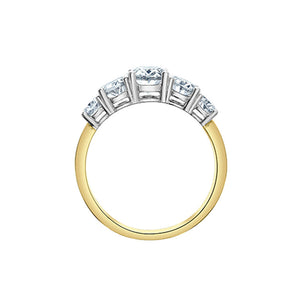 This exquisite 14K yellow and white gold ring features a 1.07-carat lab-grown oval-cut diamond at its center, radiating brilliance and elegance. Flanked by two matching oval-cut diamonds on each side, the total diamond weight reaches 2.58 carats. Each stone is prong-set in white gold, creating a striking contrast against the warm yellow gold band. A timeless design that blends classic symmetry with modern luxury—perfect for marking life’s most meaningful moments.