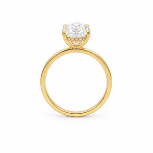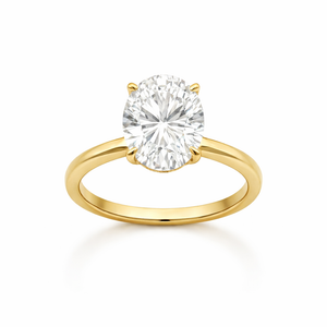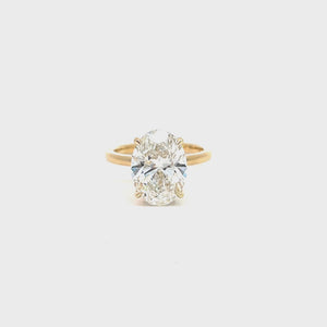 Elegant and timeless, this 14K yellow gold solitaire ring features a breathtaking 5.06 carat oval lab-grown diamond at its center. Designed to highlight the diamond’s brilliance and fire, the classic solitaire setting is enhanced by a hidden halo that adds subtle extra sparkle from beneath the center stone. With a total diamond weight of 5.21 carats, this ring offers remarkable presence and refined luxury, making it an exceptional choice for engagements or special milestone moments. Crafted with precision and attention to detail, it is designed for lasting beauty and everyday comfort. The diamond will be IGI certified and the certificate will accompany the ring.