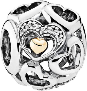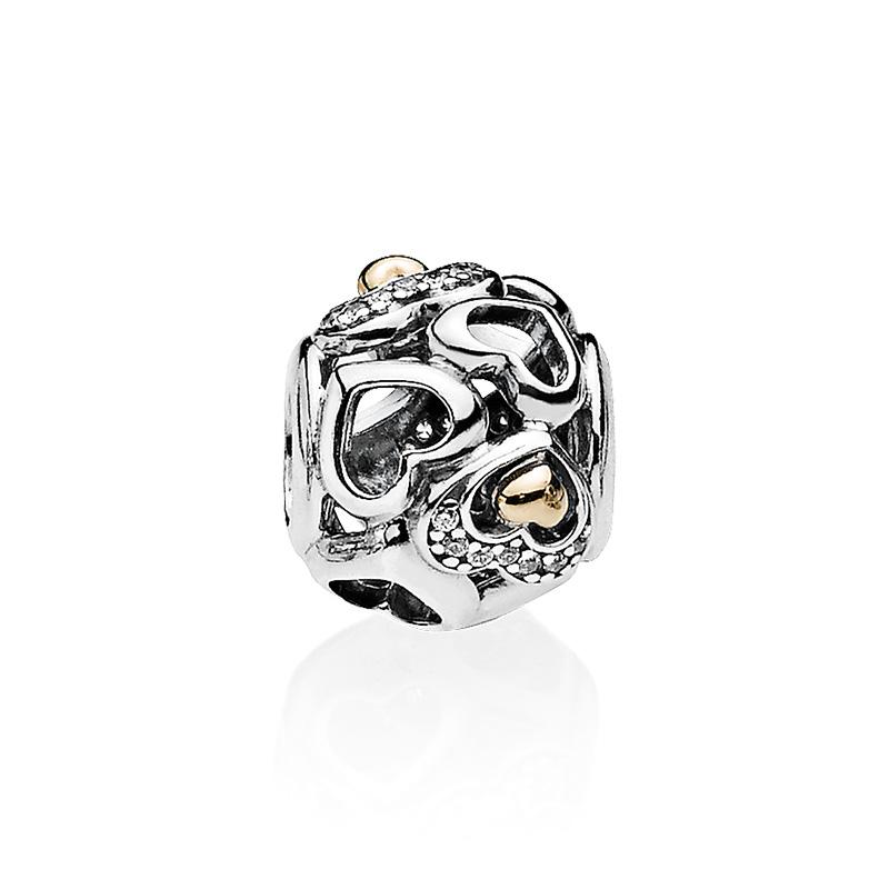 Honour love with this sterling silver openwork charm. Stone-studded hearts with 14k gold centres glow with this precious feeling.