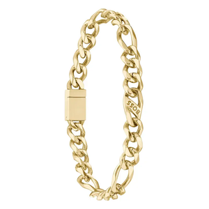 The Hugo Boss Rian bracelet is elegantly crafted in yellow gold plating, offering a sleek and sophisticated addition to any ensemble. Magnetic closure. Length 19.5cm.