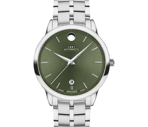 The 1881 Collection is an homage to our origins with timeless design and Swiss craftsmanship. A Swiss made self-winding movement drives this watch, powered by the motion of your wrist. This 40mm three-hand watch features a green dial, stainless steel dauphine hands, and our signature dot at 12 o'clock. Automatic movement. Water resistance up to 30 meters. Sapphire crystal. Deployment clasp with push button.