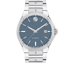 The Movado SE Automatic redefines sport-elegant design with our signature dot motif. A Swiss made self-winding movement drives this watch, powered by the motion of your wrist. This 41mm watch features a blue Pavés de Paris dial, Swiss Super-LumiNova® accents, and an exhibition caseback.